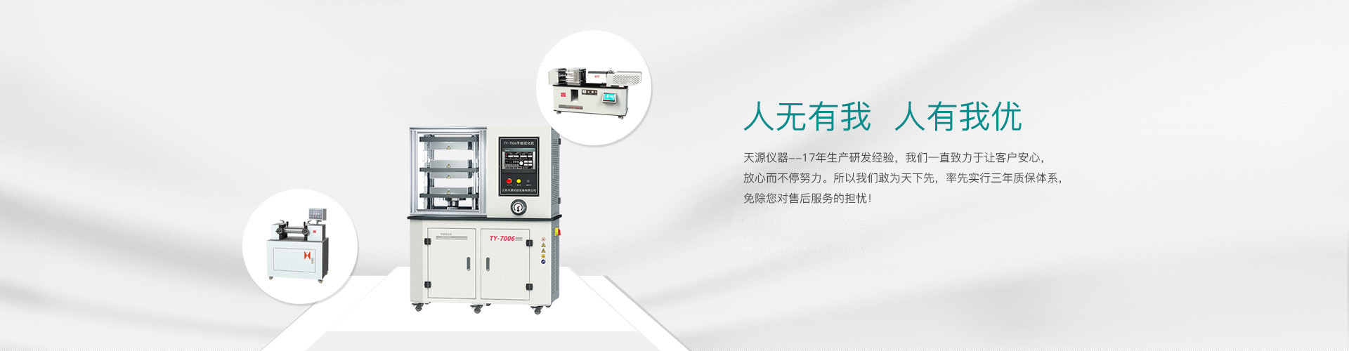 “江蘇天源”經過15年的錘煉,現(xiàn)有員工50余人,公司設有電子式萬能試驗機、塑料物理檢測儀器、橡膠物理檢測儀器和高分子材料制樣設備4條產品線,為用戶提供全系列的電子萬能試驗機(10N-600Kn)、全系列高分子材料檢測儀器及高分子材料工藝應用培訓與研發(fā)。